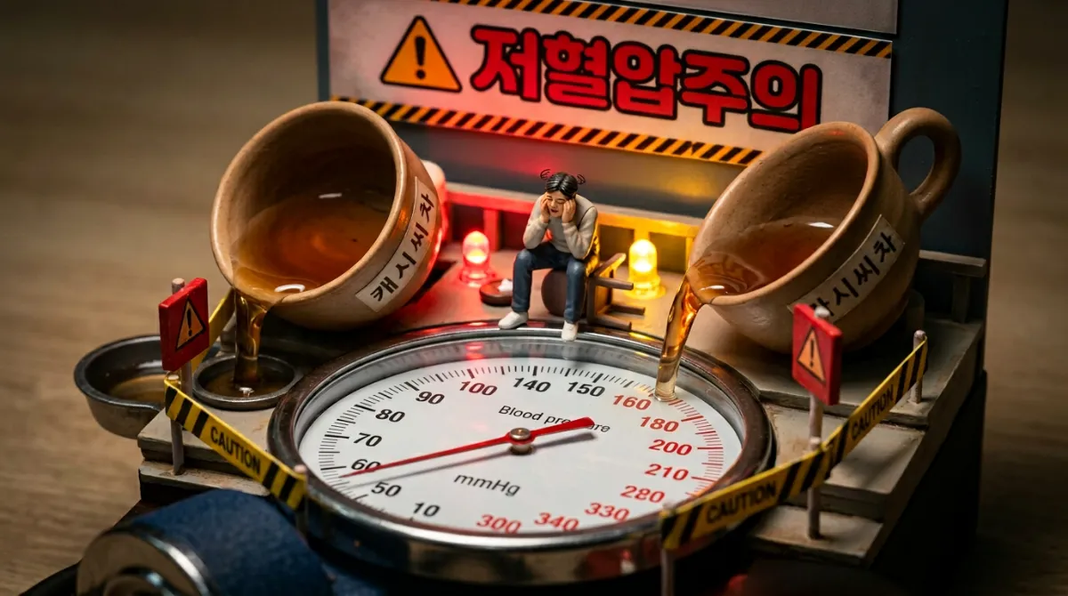 결명자는 본래 혈압을 낮추는 성질이 강해요. 따라서 평소 혈압이 낮으신 분(저혈압 환자)들이 결명자차를 진하게, 혹은 다량으로 장복할 경우 어지럼증이나 피로감을 느낄 수 있으므로 섭취에 각별한 주의가 필요하답니다.