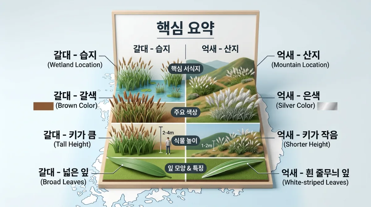 - 장소 확인: 물가면 갈대, 산이나 들이면 억새!
