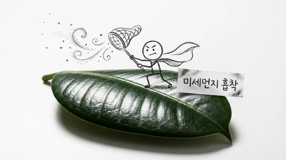 공기 정화 효능: 포름알데히드 제거에 특히 탁월하며, 넓은 잎 표면에 미세먼지가 잘 달라붙어 실내 미세먼지 농도를 낮추는 데 기여합니다.