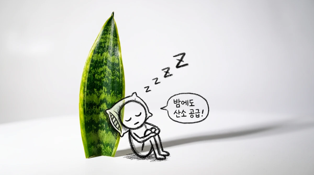 1. 산세베리아 (스투키) - 밤에도 일하는 완벽한 파트너