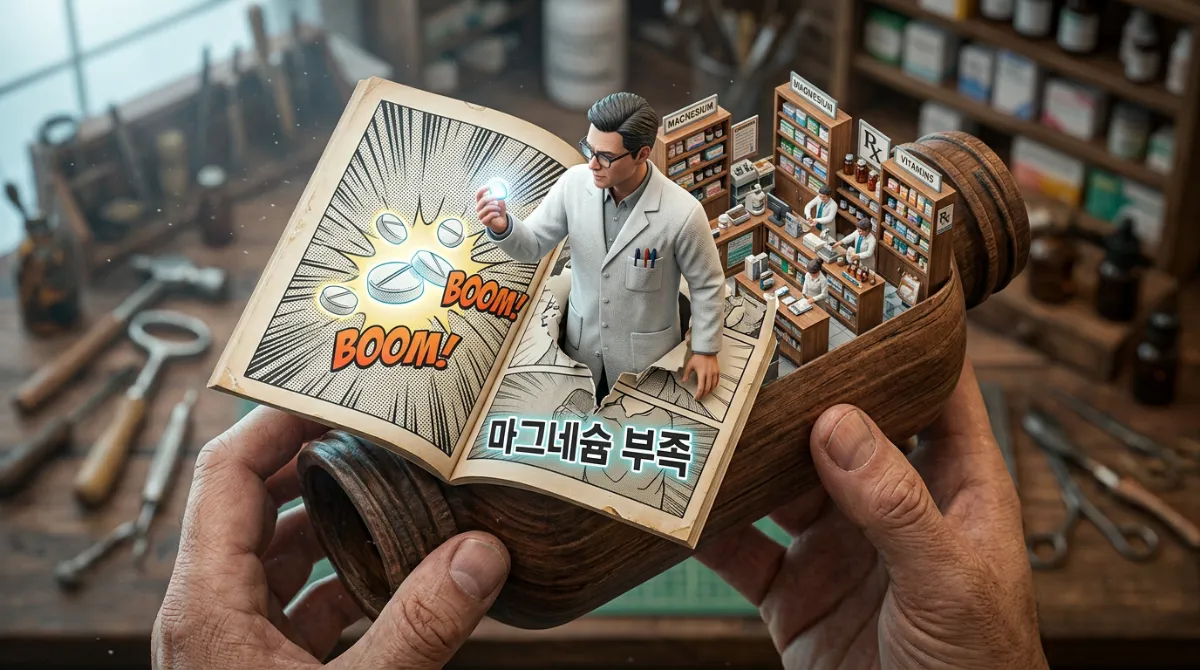 많은 분이 눈꺼풀이 떨리면 가장 먼저 '마그네슘'을 떠올리십니다. 실제로 마그네슘은 근육의 수축과 이완을 조절하는 핵심 미네랄이기 때문에, 체내 수치가 떨어지면 근육 조절 기능에 문제가 생겨 경련이 발생할 수 있습니다.
