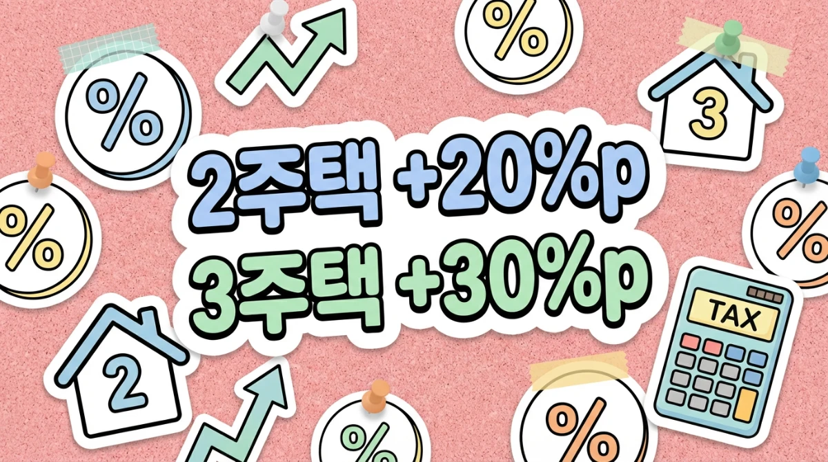 - 중과 가산: 2주택자 기본세율 + 20%p, 3주택 이상 기본세율 + 30%p.