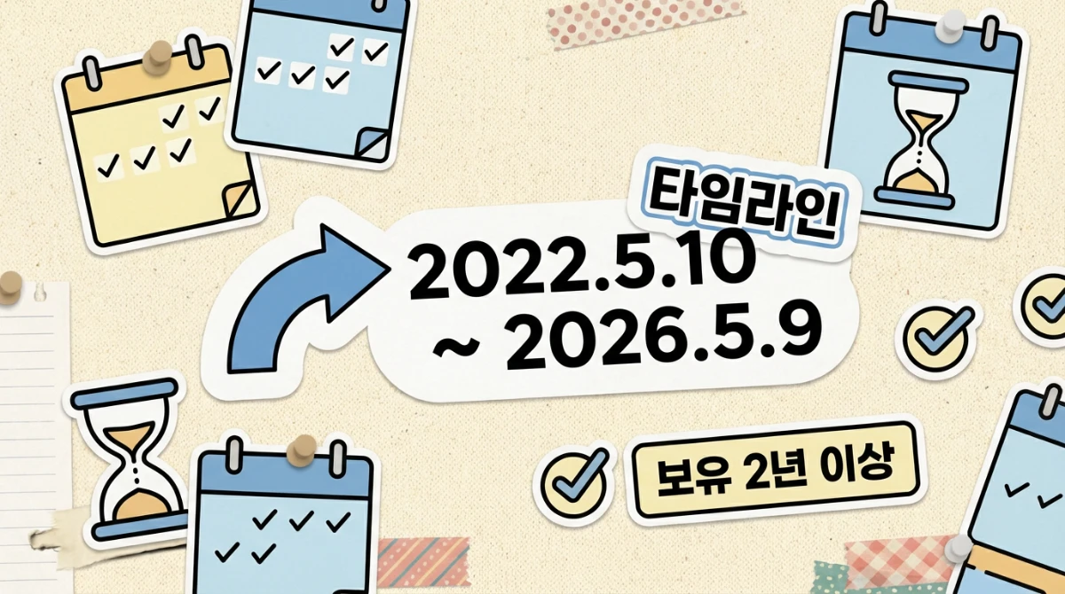 A1: 2022년 5월 10일부터 2026년 5월 9일까지 양도(잔금·소유권 이전일 기준)하는 분에 대해 적용됩니다. 정부는 이후 추가 연장은 없다고 공식적으로 밝힌 상태입니다.