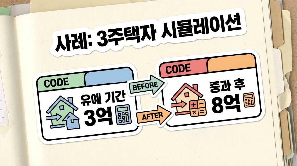 몇 가지 가상의 시나리오를 통해 이번 중과 배제 혜택이 얼마나 큰 차이를 만들어내는지, 특히 3주택자의 경우를 중심으로 살펴보겠습니다.