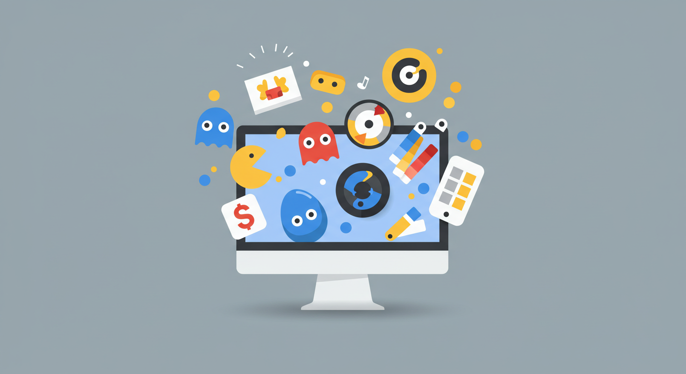 - 팩맨 (Pac-Man): 구글에 'Pac-Man'을 검색해 보세요. 1980년대 오락실을 풍미했던 전설의 게임 팩맨을 바로 플레이할 수 있는 카드(Doodle)가 나타납니다.