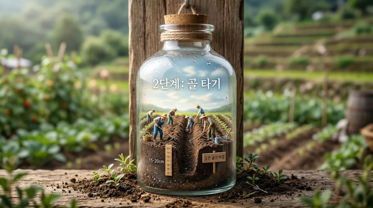 3단계. 모종 심기: 모종을 5~10cm 간격으로 세우듯이 놓아줍니다. 이때 너무 깊게 묻지 말고, 뿌리 부분만 살짝 덮일 정도로 흙을 채워주세요. 나중에 자라면서 흙을 덮어주는 '북주기'를 해야 하니까요.