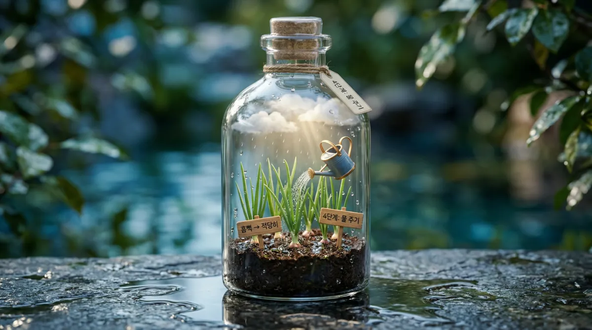 4단계. 물 주기: 심은 직후에는 물을 흠뻑 주어 뿌리가 흙과 잘 밀착되게 도와주세요. 하지만 이후에는 겉흙이 말랐을 때만 적당히 주는 게 중요합니다.