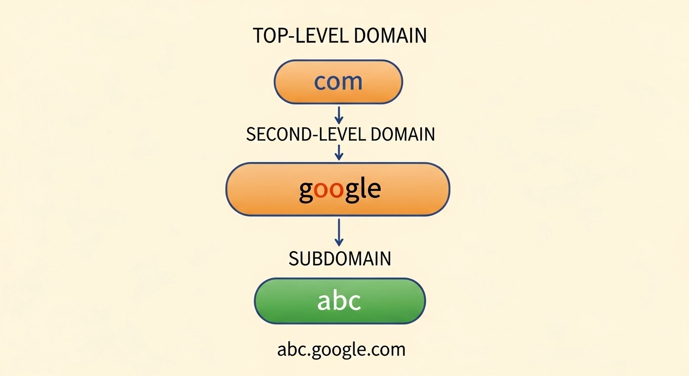 2차 도메인 앞에 점(`.`)을 찍고 또 다른 이름을 붙이면 바로 3차 도메인, 즉 서브도메인(Subdomain)이 됩니다. 서브도메인은 하나의 큰 웹사이트 안에서 특정 목적을 가진 별도의 공간을 만들 때 아주 유용하게 쓰여요.