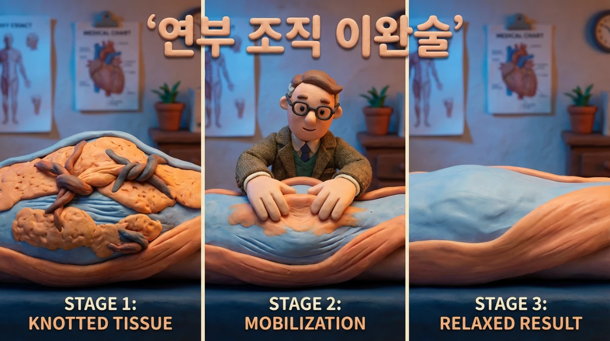 | 연부 조직 이완술 (Soft Tissue Mobilization) | 근육, 인대, 건 등의 유착을 풀어주고 혈액 순환을 개선하여 통증 완화. |