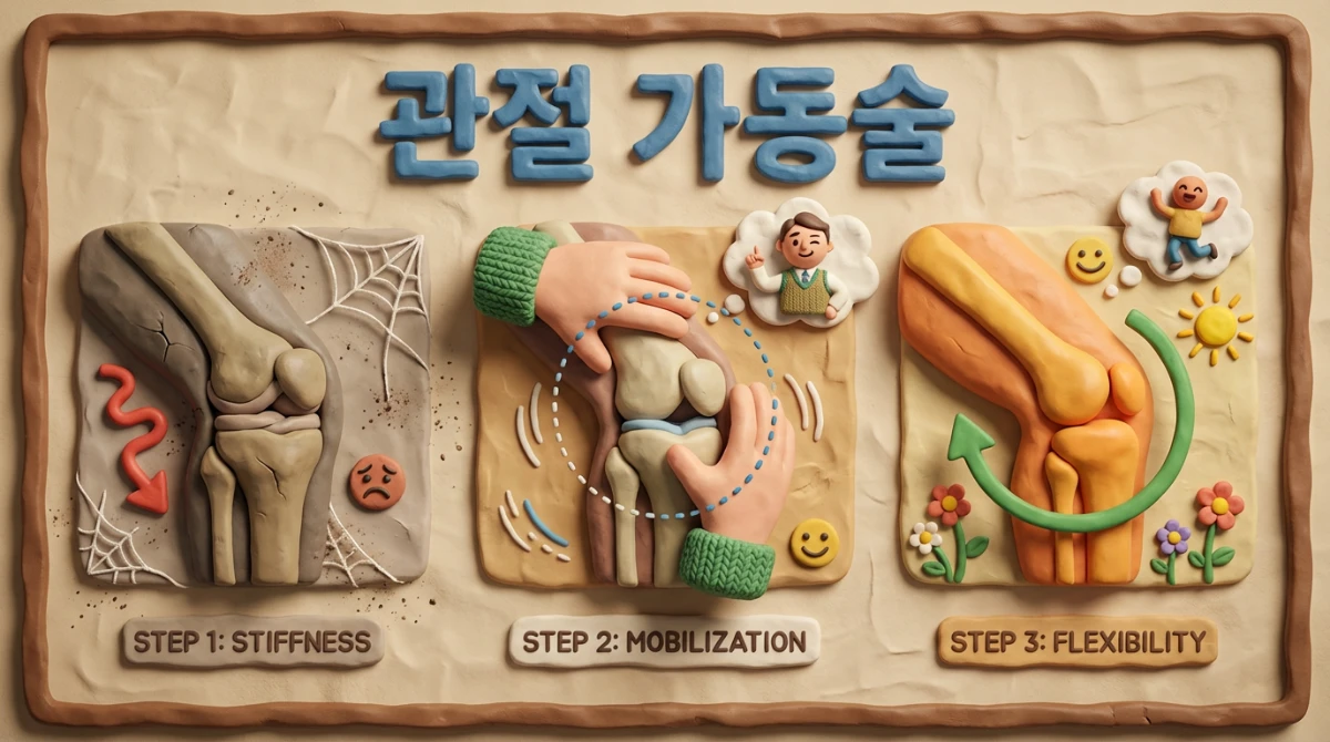 주요 원리는 세 가지입니다. 첫째, 관절 가동성 회복입니다.