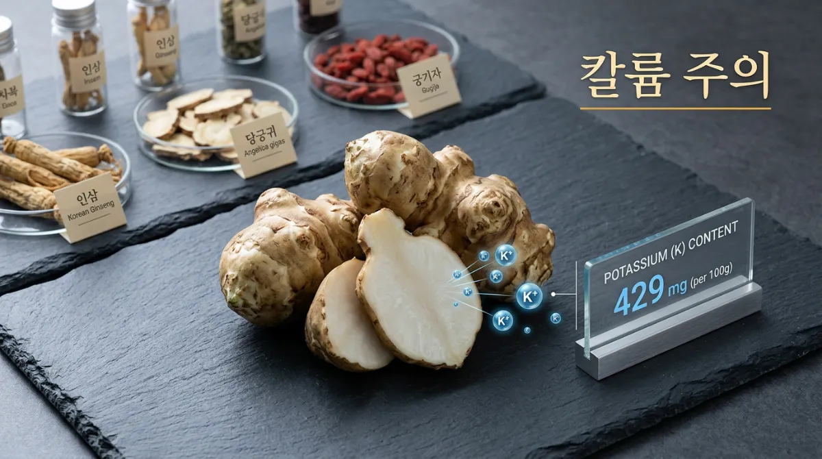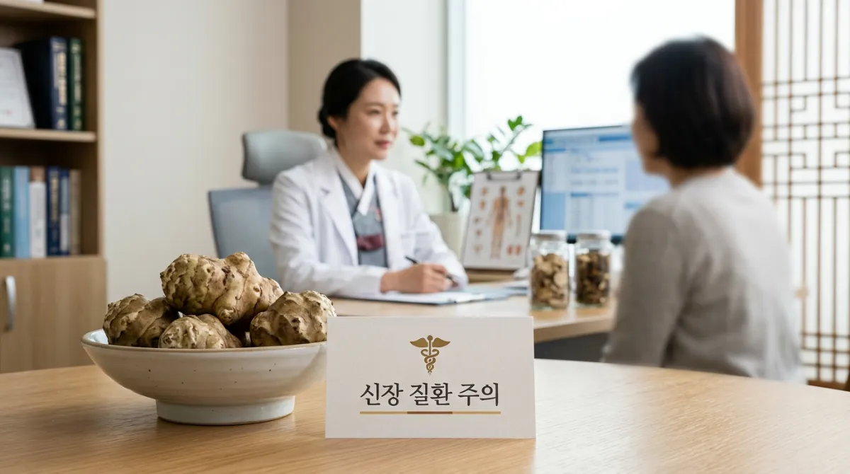 돼지감자는 칼륨 함량이 매우 높습니다. 따라서 **신장 질환**이 있는 분들은 칼륨 배출이 어려울 수 있으니 반드시 전문의와 상담 후 섭취해야 합니다.