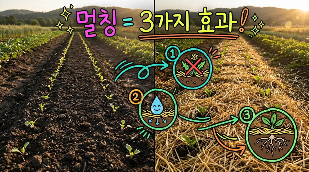 볏짚 멀칭은 단순한 장식이 아니에요.