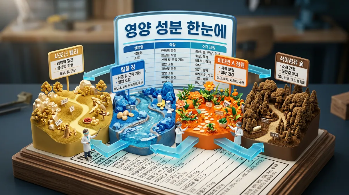| 비타민 A | 시력 보호, 피부 건강, 점막 보호 |