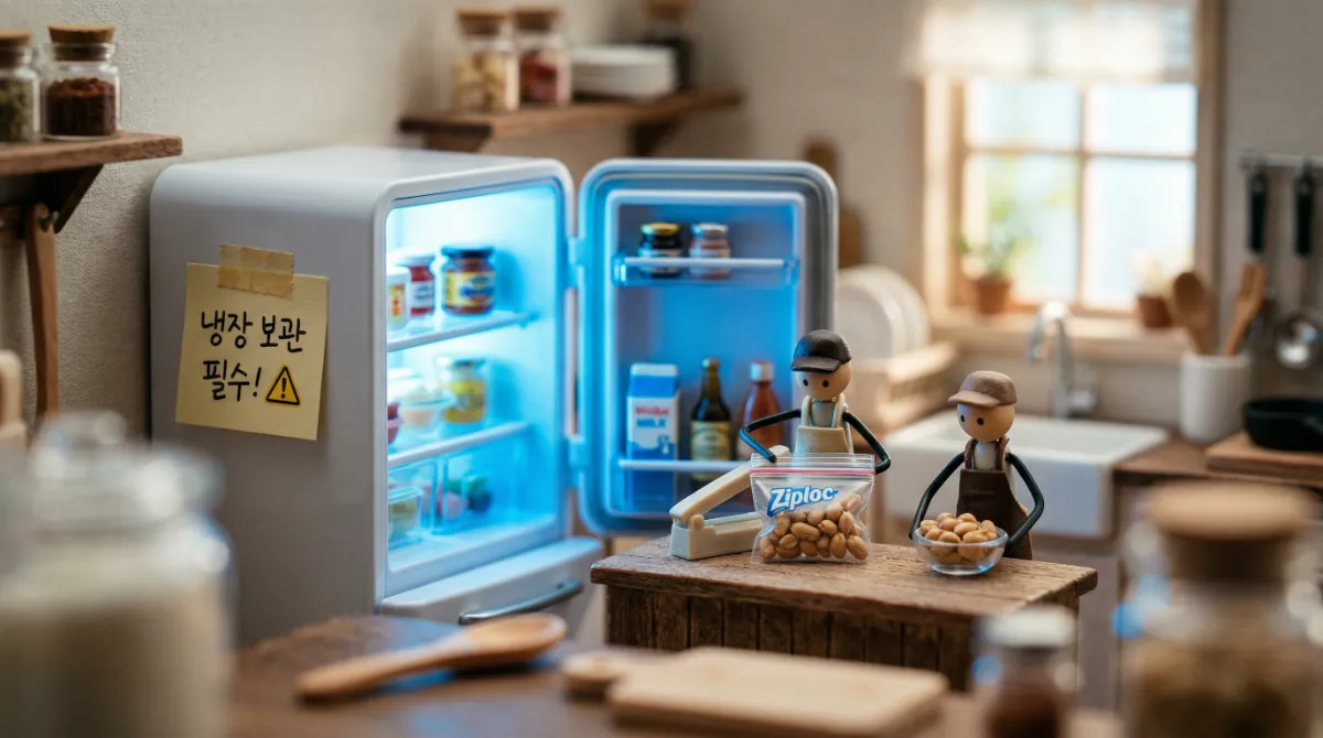 눅눅해지거나 곰팡이가 핀 땅콩은 절대 드시면 안 됩니다. 땅콩에 생기는 아플라톡신이라는 곰팡이 독소는 강력한 발암 물질로, 가열해도 없어지지 않습니다. 반드시 밀봉하여 서늘하고 건조한 곳이나 냉장/냉동 보관하세요.
