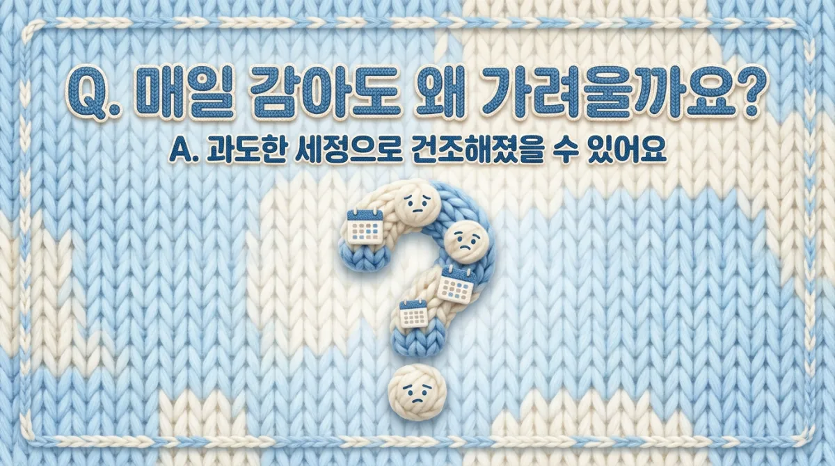 A. 너무 자주 감아서 두피가 건조해졌거나, 샴푸 잔여물이 남았을 가능성이 큽니다. 헹굼 시간을 2배로 늘려보세요.