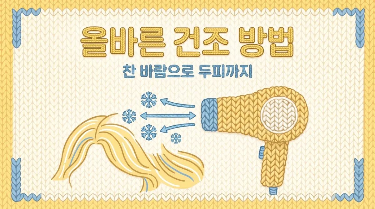 | 건조 방법 | 찬 바람으로 두피 안쪽까지 바짝 말리기 (습기 방지) |