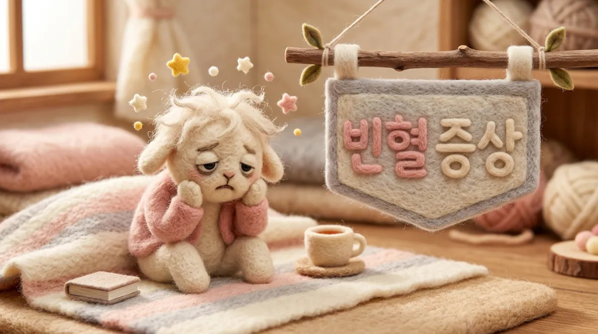 ③ 빈혈 — 혈액 내 헤모글로빈이 부족하면 뇌에 산소 공급이 원활하지 않아 어지럼증이 생깁니다. 창백한 얼굴, 쉽게 피로해짐, 숨 참, 두근거림이 함께 나타나면 빈혈을 의심해볼 수 있어요. 특히 생리량이 많은 여성이나 채식 위주 식단을 하는 분들에게 자주 나타납니다.