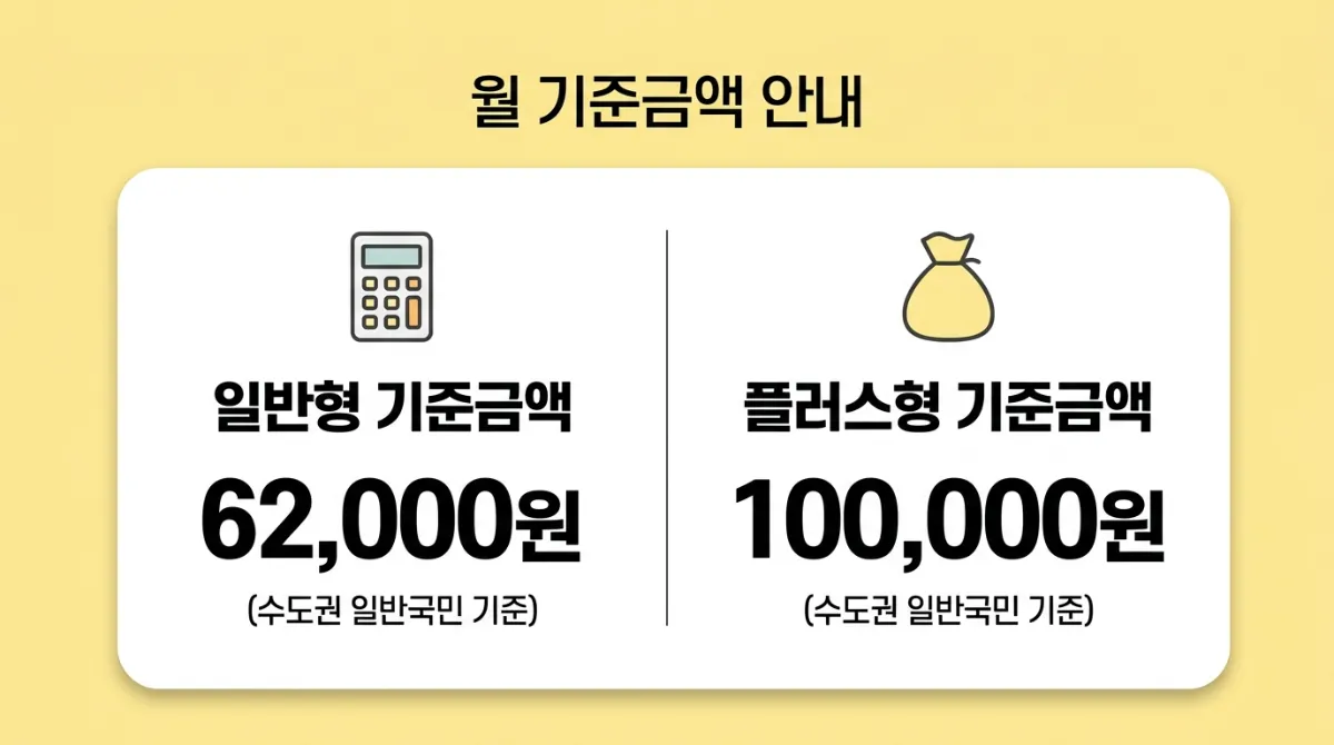 | 기준금액 차이 | 플러스형이 38,000원 더 높음 (수도권 기준) | |