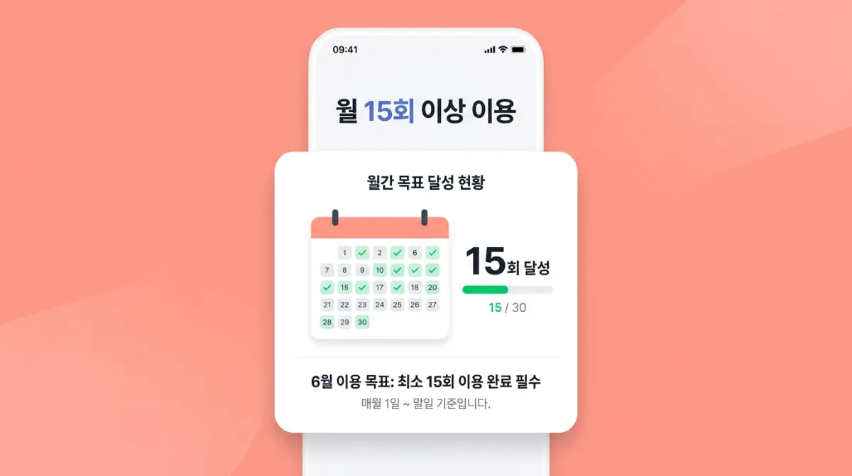 그리고 환급을 받으려면 월 15회 이상 이용이 기본 조건이에요.