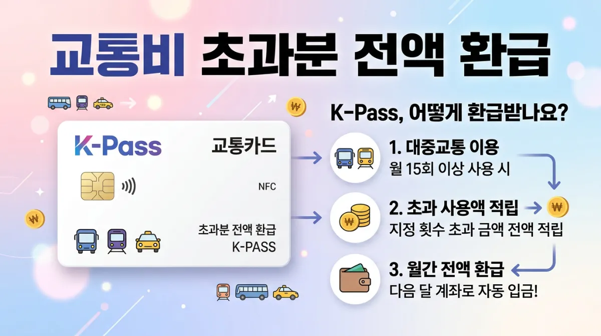 기준금액 아래로 쓰면 기존 K-패스처럼 정률 환급이 적용되고, 기준금액을 넘으면 초과분 전액 환급으로 전환됩니다.
