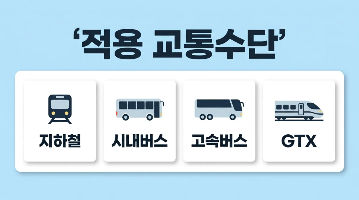| 적용 교통수단 | 1회 3,000원 미만 중심 | 모든 대중교통 포함 |