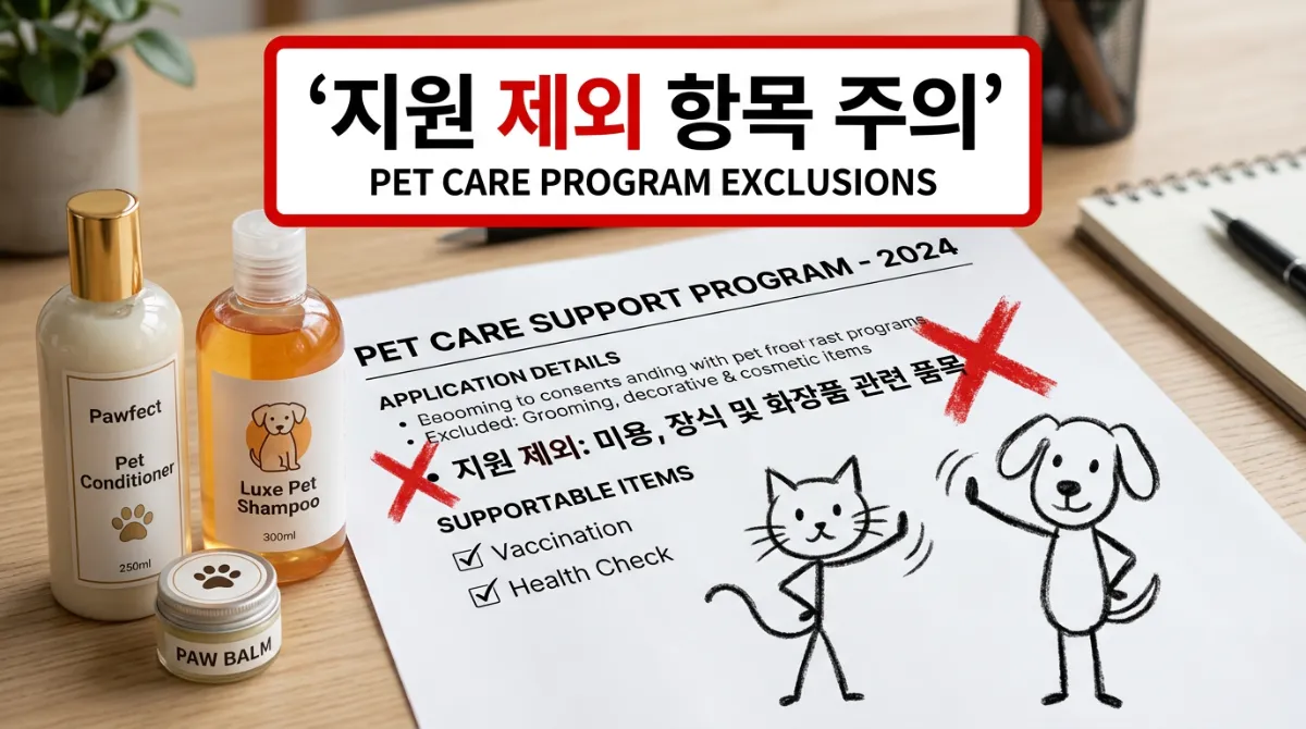 영수증을 다 챙겨 갔다가 "이건 지원 안 됩니다"라는 말을 듣는 경우가 꽤 있어요. 신청 전에 제외 항목을 미리 파악해 두는 게 중요합니다. 지자체마다 조금씩 다르지만 일반적으로 제외되는 항목은 아래와 같습니다.