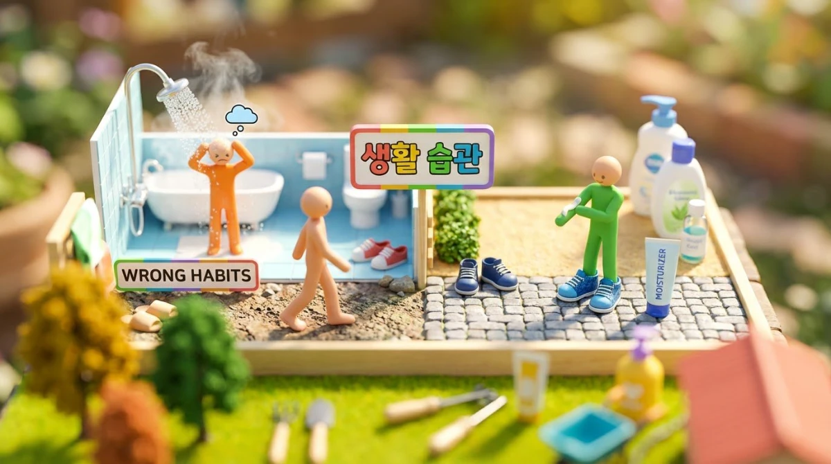 A3: 몇 가지 쉬운 습관만으로도 큰 도움이 됩니다. 먼저, 발을 씻을 때는 미지근한 물을 사용하고 보습 비누를 쓰세요. 샤워 후 3분 이내에 발 보습제를 충분히 발라주고, 밤에는 면 양말을 신는 것이 좋습니다.
