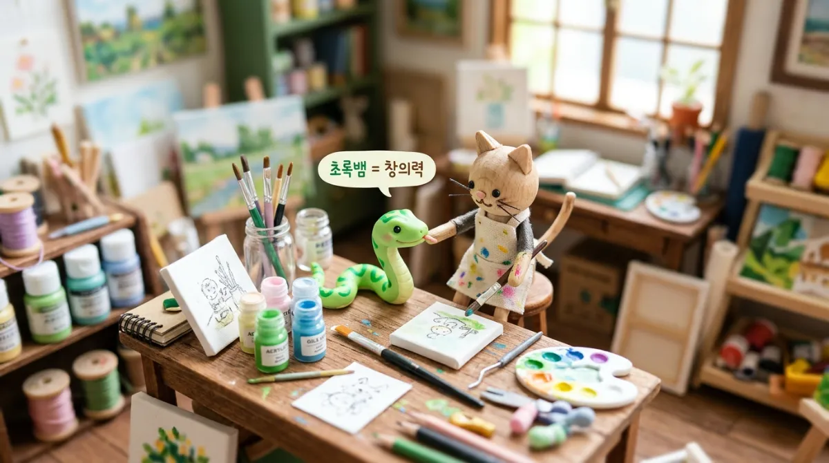 초록색 뱀은 창의력과 건강을 상징하는 경우가 많습니다.