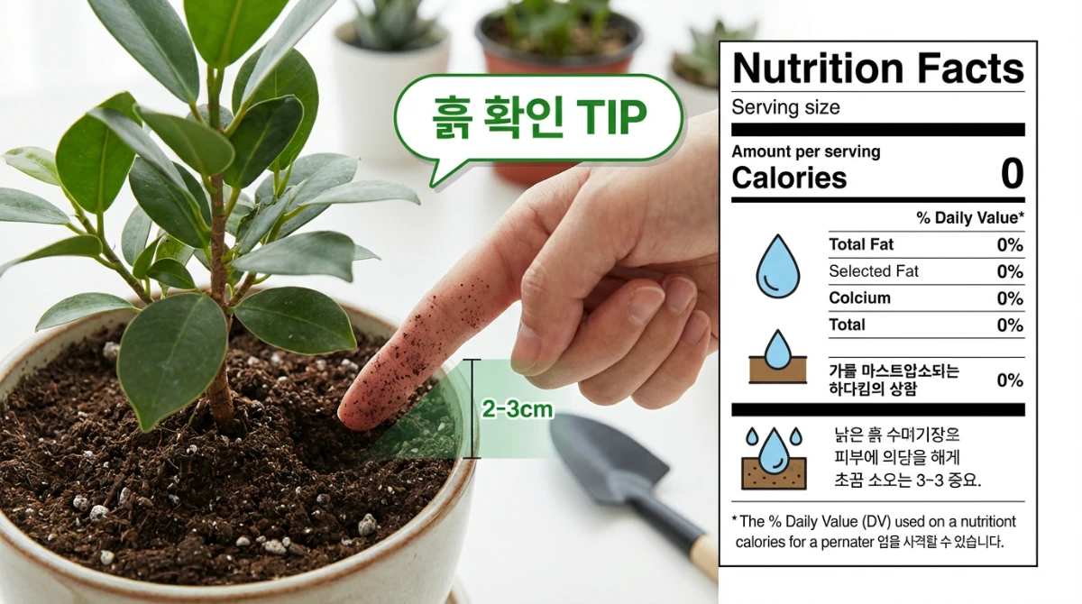 식물에게 물은 생명과 직결되는 중요한 요소이지만, 그만큼 실수하기 쉬운 부분이기도 해요. 뱅갈고무나무 잎이 떨어지는 가장 흔한 원인 중 하나가 바로 물 주기 문제입니다. 과습과 건조는 모두 잎을 떨어뜨릴 수 있어 주의해야 합니다.
