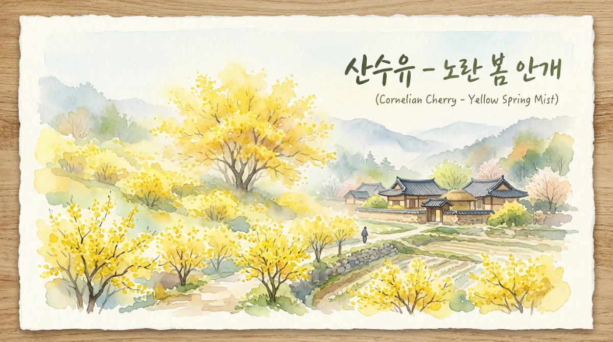 지리산 자락 구례를 노랗게 물들이는 산수유는 마치 노란 안개가 낀 것처럼 몽환적인 분위기를 연출해요. 산수유가 피고 나면,