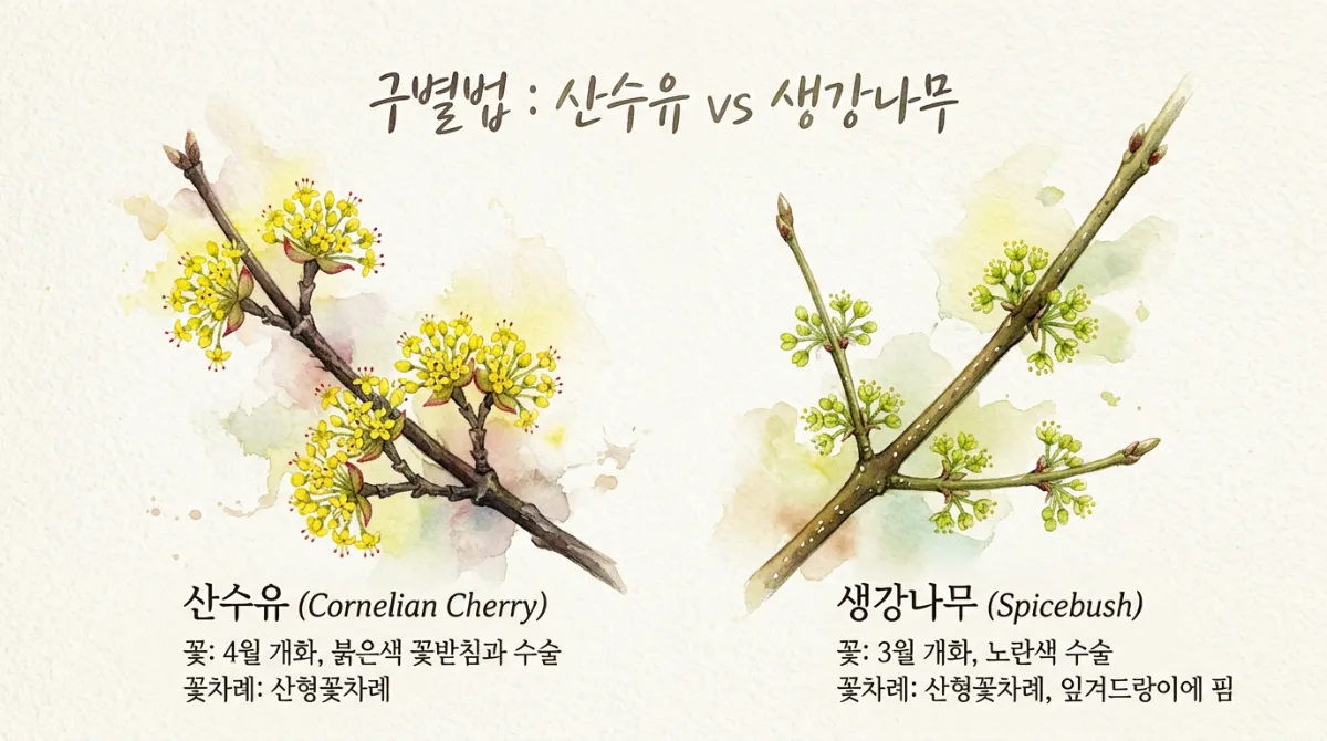 💡 실전 꿀팁! 산수유 vs 생강나무 구별법