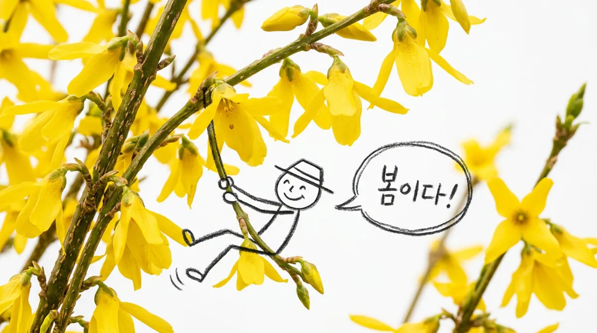 - 개나리: 우리에게 가장 친숙한 봄꽃이죠? 노란 종 모양의 꽃들이 조르르 매달린 걸 보면 절로 웃음이 나요.