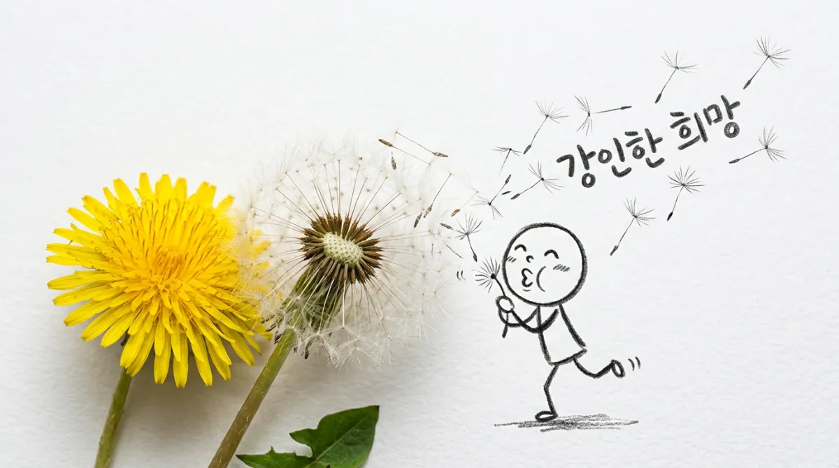 - 민들레: 밟혀도 일어나는 강인함의 상징이죠. 노란 토종 민들레를 찾으면 운이 좋은 거예요.