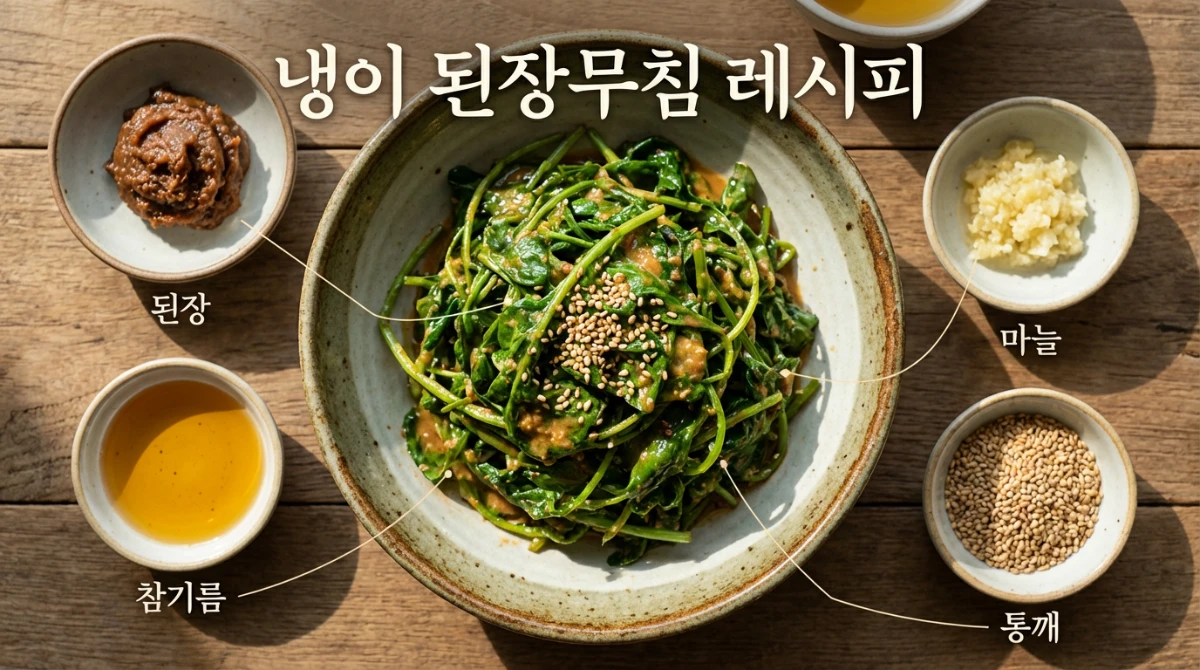 데친 냉이를 된장, 다진 마늘, 참기름, 통깨와 버무리면 향긋하고 건강한 반찬이 뚝딱 완성됩니다.