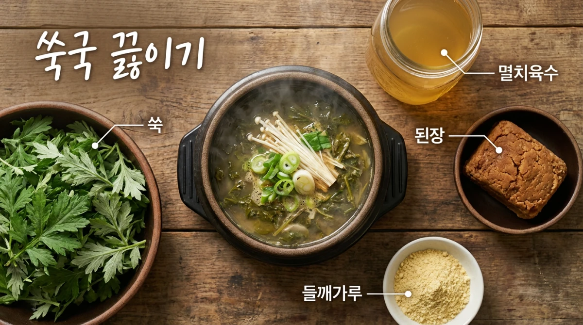 멸치 육수에 된장을 풀고 손질한 쑥을 넣어 끓이면 향긋하고 구수한 쑥국이 완성됩니다. 들깨가루를 조금 넣으면 더욱 깊은 맛을 낼 수 있어요.