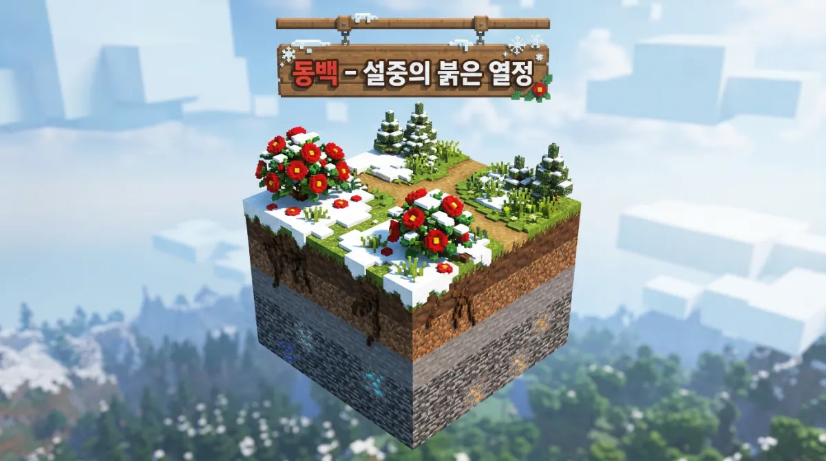- 동백: 겨울 끝자락부터 이른 봄까지 볼 수 있는 꽃입니다. 하얀 눈 속에서 피어나는 붉은 동백꽃의 강렬한 대비는 무척이나 매혹적입니다.