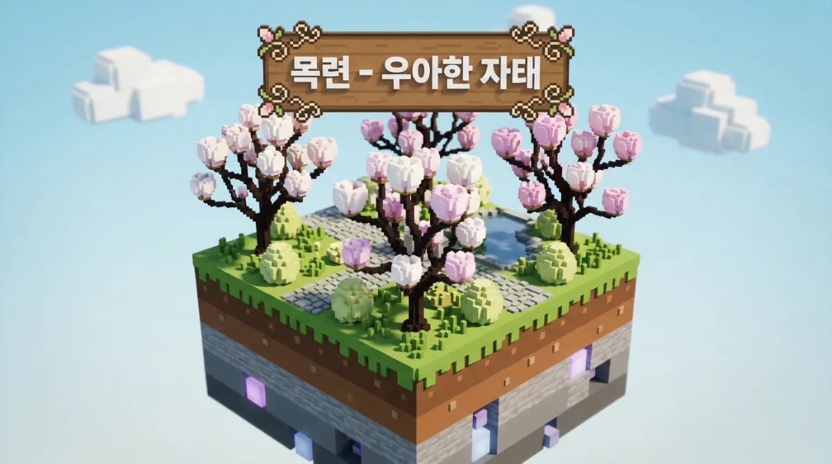 - 목련: 잎이 나기 전 커다란 흰색 또는 분홍색 꽃을 탐스럽게 피워냅니다. 도시 공원이나 아파트 화단에서 우아한 자태를 뽐냅니다.