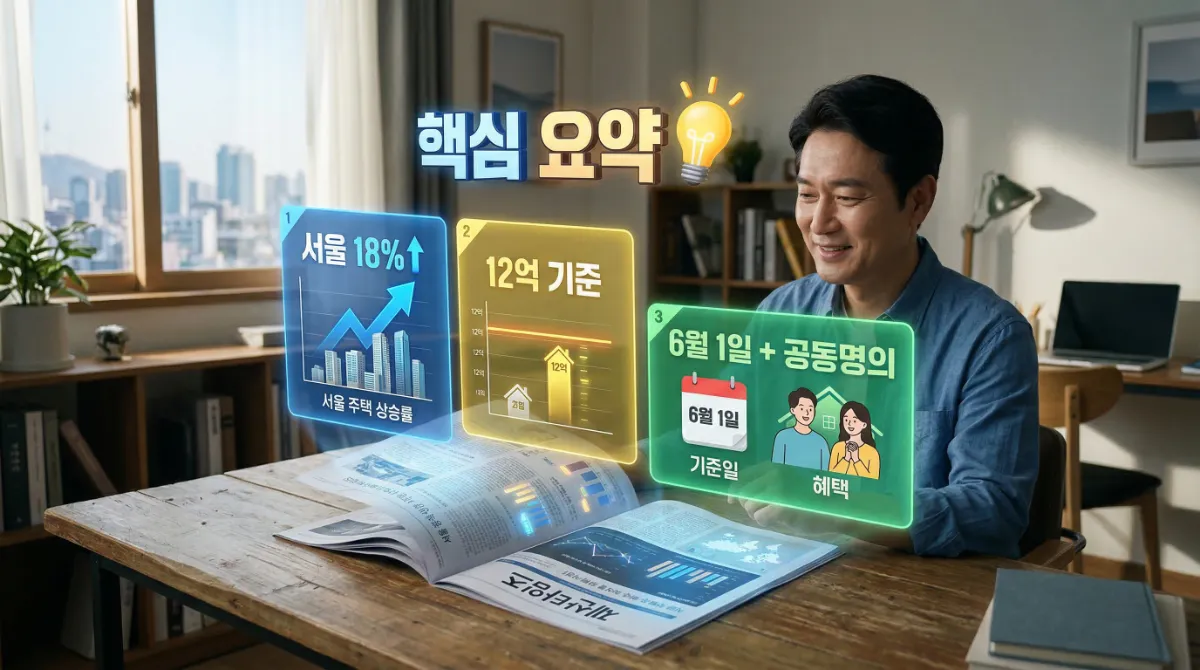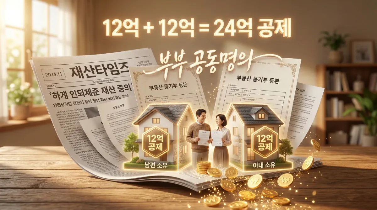 - 증여 및 명의 분산: 공시가격 12억 원 초과가 확실시된다면 부부 공동명의를 통해 인별 공제(각 12억, 총 24억 효과)를 극대화하는 것을 검토해야 합니다.