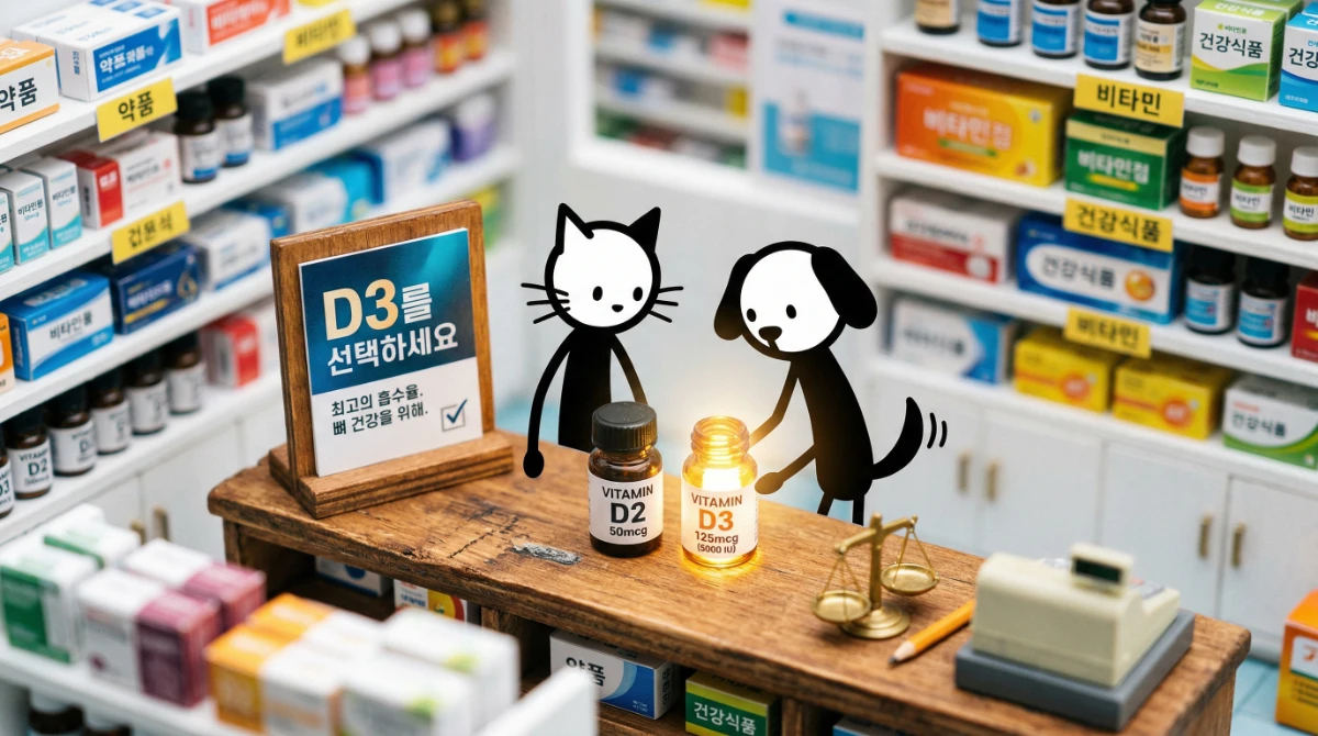 비타민 D 영양제는 주로 식물성인 D2와 동물성인 D3로 나뉩니다. 우리 몸에서 합성되는 형태와 동일하여 체내 흡수율과 생체 이용률이 훨씬 뛰어난 비타민 D3(콜레칼시페롤) 제품을 고르시는 것이 압도적으로 유리합니다. 원재료명 표기란에 '비타민 D3'라고 명확히 적혀있는지 확인하세요.