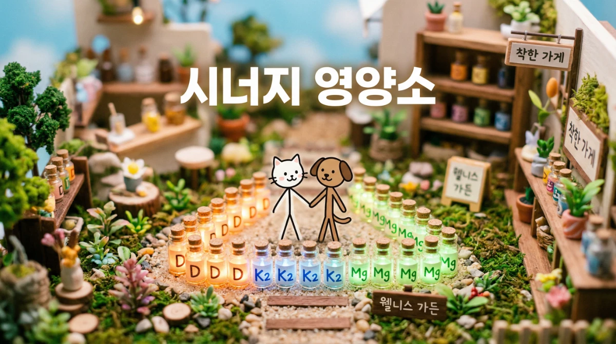 비타민 D를 섭취할 때는 혈중 칼슘이 혈관이 아닌 뼈로 잘 찾아가도록 돕는 비타민 K2, 그리고 비타민 D를 활성화 상태로 바꿔주는 마그네슘을 함께 섭취하면 환상의 궁합을 자랑합니다. 이 성분들이 함께 들어있는 복합 영양제를 고르는 것도 좋은 전략이에요.