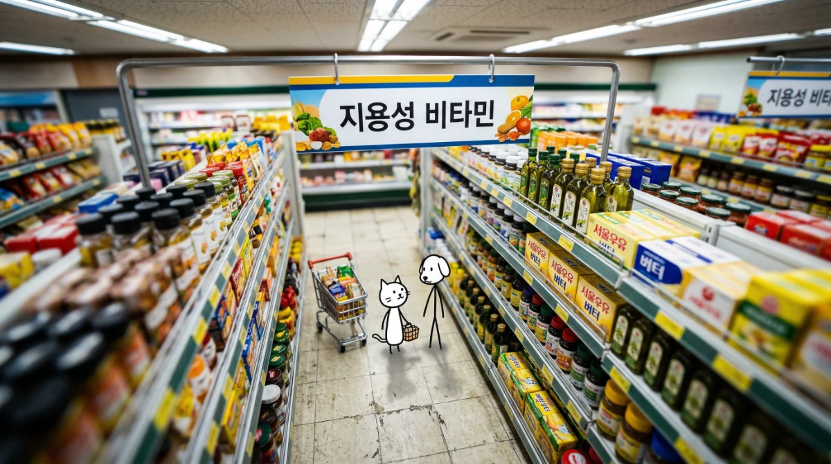 앞서 말씀드린 대로 지용성이기 때문에, 단단한 정제(알약) 형태보다는 기름에 녹아 있는 연질 캡슐이나 방울로 떨어뜨려 먹는 액상(드롭) 형태가 몸에 훨씬 더 잘 흡수됩니다.