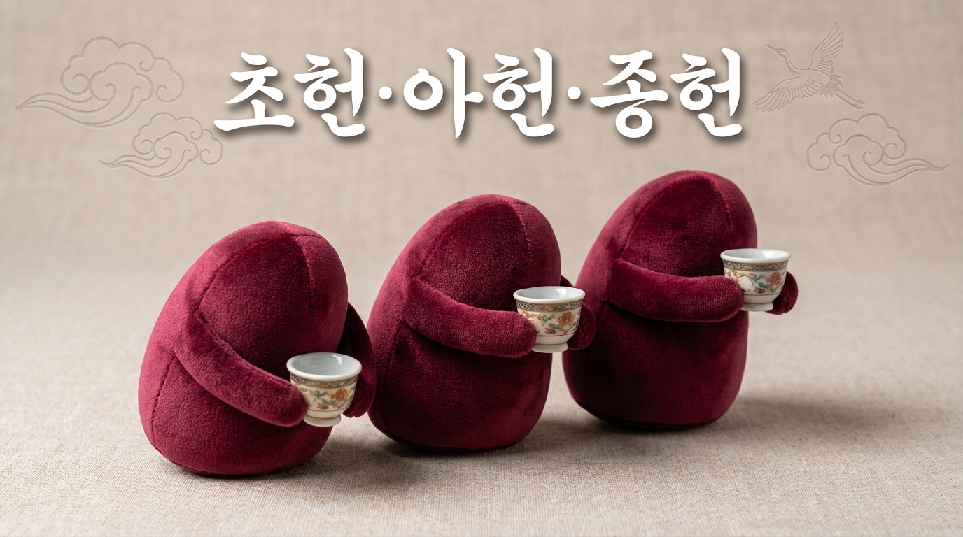 - 아헌 (亞獻): 두 번째 잔을 올리는 절차입니다. 제주 다음가는 사람이 절을 올리고 술을 따릅니다.
