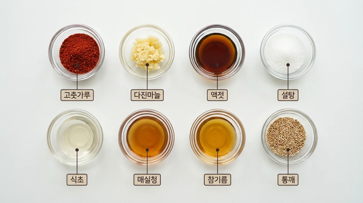 - 3. 황금 비율 양념장: 고춧가루, 액젓, 설탕, 식초, 매실청, 마늘, 참기름, 통깨의 황금 비율을 지켜야 해요.