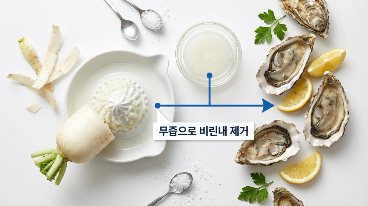 - ✔️ 비린내 잡는 비법: 헹군 굴을 무 즙에 가볍게 버무려 5분 정도 두었다가 다시 찬물에 살짝 헹궈주세요. 무의 효소가 굴의 비린내를 효과적으로 잡아준답니다. 저는 이 방법을 쓰고 나서부터는 굴 비린내 걱정을 뚝! 하고 있어요.