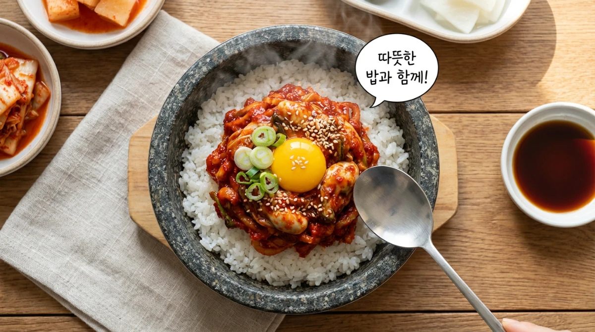 - 🍚 따뜻한 밥과 함께: 갓 지은 따뜻한 흰쌀밥 위에 생굴무침을 듬뿍 올려 먹으면 다른 반찬이 필요 없을 정도예요. 비빔밥처럼 비벼 먹어도 정말 맛있답니다.