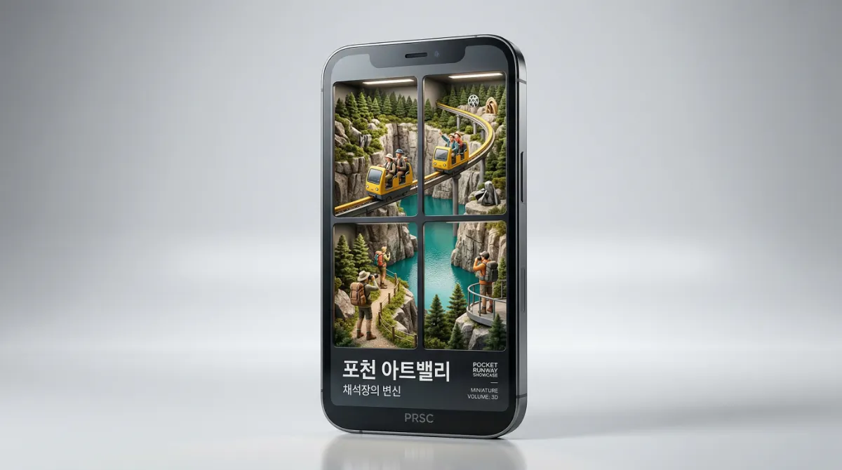 포천 아트밸리는 과거 버려졌던 채석장을 눈부신 복합 문화 예술 공간으로 재탄생시킨 기적 같은 장소입니다. 가파른 언덕을 올라가는 모노레일을 타는 재미도 쏠쏠하고, 무엇보다 화강암 직벽 아래로 펼쳐진 에메랄드빛 '천주호'의 신비로운 풍경은 감탄을 자아냅니다.