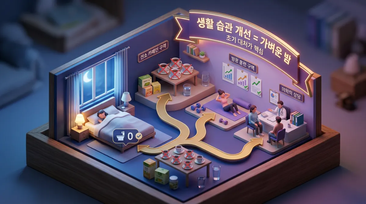 지난주 화요일 밤이었습니다. 비는 부슬부슬 내리는데 잠결에 화장실만 벌써 세 번째였거든요. 겨우 다시 잠들려 하면 방광 쪽에서 미묘한 압박감이 느껴져 결국 몸을 일으킬 수밖에 없었습니다.