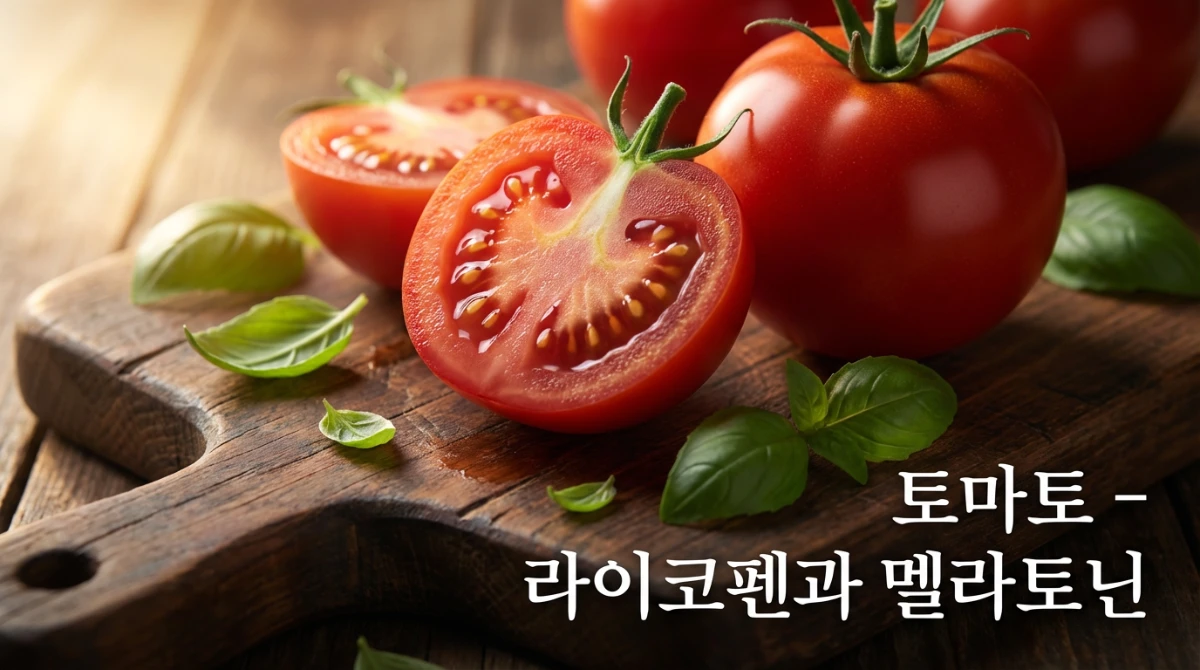 토마토는 멜라토닌뿐만 아니라 항산화 성분인 라이코펜이 풍부하여 전반적인 건강 증진에도 좋습니다. 멜라토닌은 씨앗 부분에 특히 많다고 알려져 있습니다.