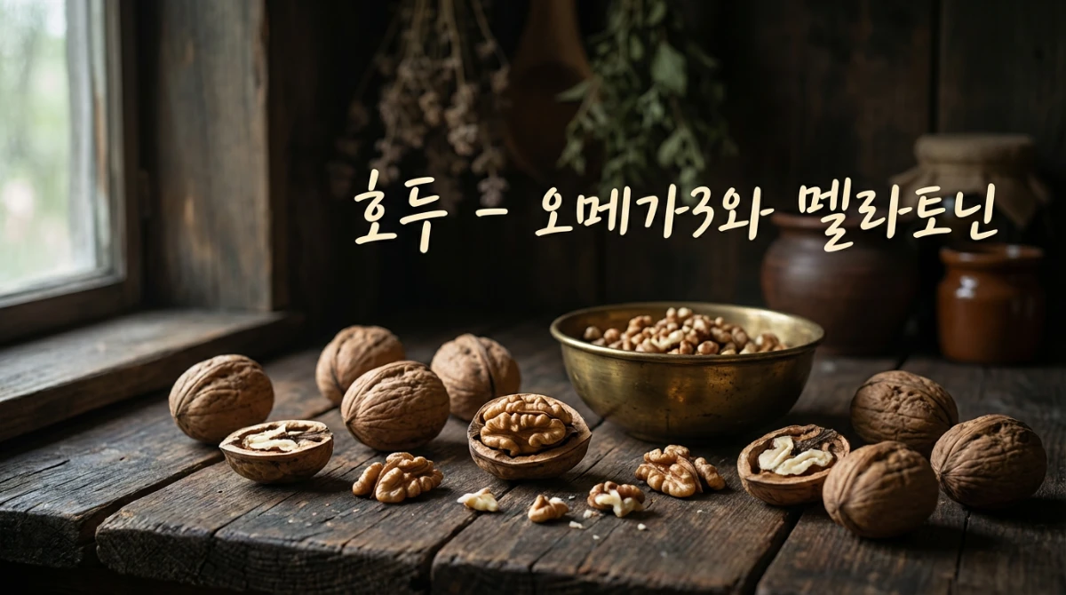 호두는 멜라토닌뿐만 아니라 수면에 필수적인 트립토판, 마그네슘, 오메가-