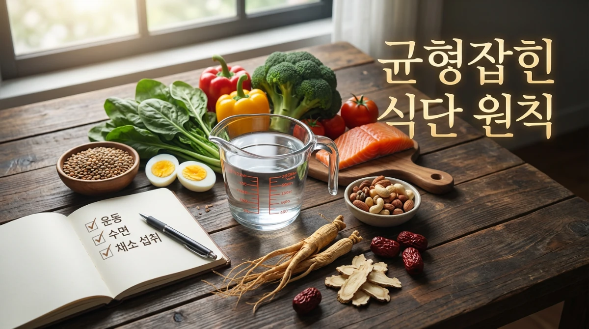 - 균형 잡힌 식단: 특정 영양소 하나에만 집중하기보다는 탄수화물, 단백질, 지방, 비타민, 미네랄을 골고루 섭취하는 균형 잡힌 식단이 기본입니다. 채소와 과일을 충분히 섭취하는 것도 잊지 마세요.
